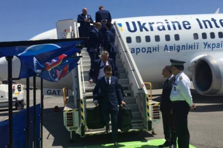 С трапа первыми спустились Михаил Фоменко, Андрей Шевченко и Андрей Павелко. Причем под ноги украинцам постелили зеленый ковер в виде футбольного поля с эмблемой Евро посередине. Разукрашенный в сине-желтые цвета автобус сборной, на котором сверкает надпись "Мрія народжує переможців", у отеля встречали добрых три десятка людей. Здесь и местный персонал, простые прохожие и журналисты. Немецкий массмедийщик, правда, добраться до Анатолия Тимощука сквозь толпу так и не сумел.
