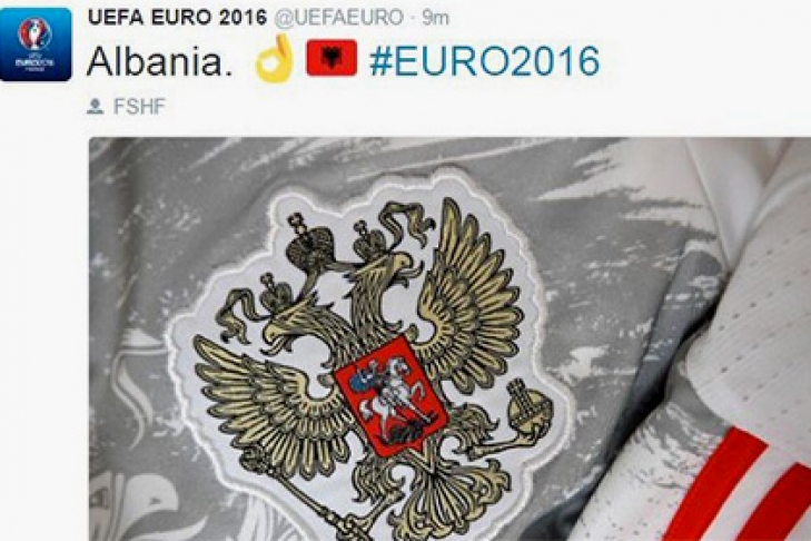 Во вторник, 7 июня, в официальном Twitter Евро-2016 началась презентация формы участников турнира. Когда очередь дошла до Албании, к посту была прикреплена картинка с футболкой сборной России. Твит был оперативно удален.