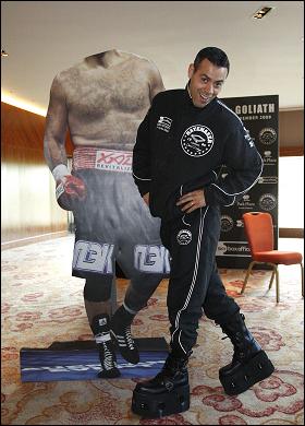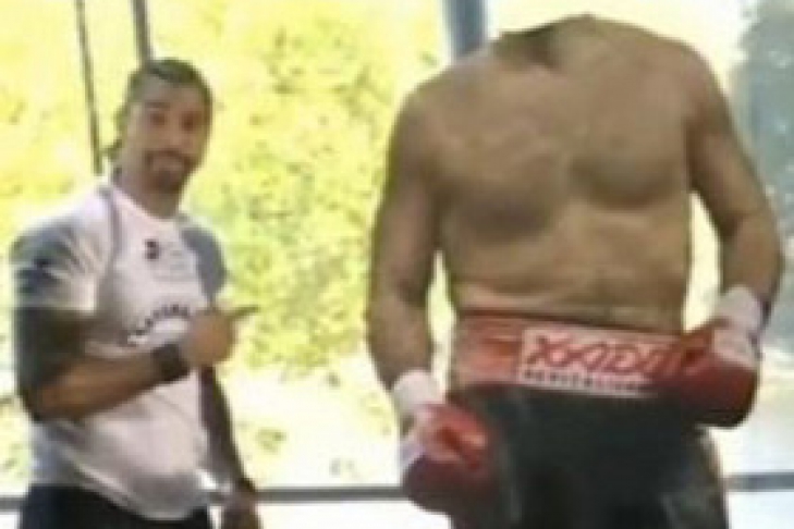 Картонная статуя Николая Валуева и тренер Хэя Адам Бут