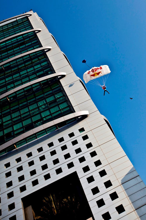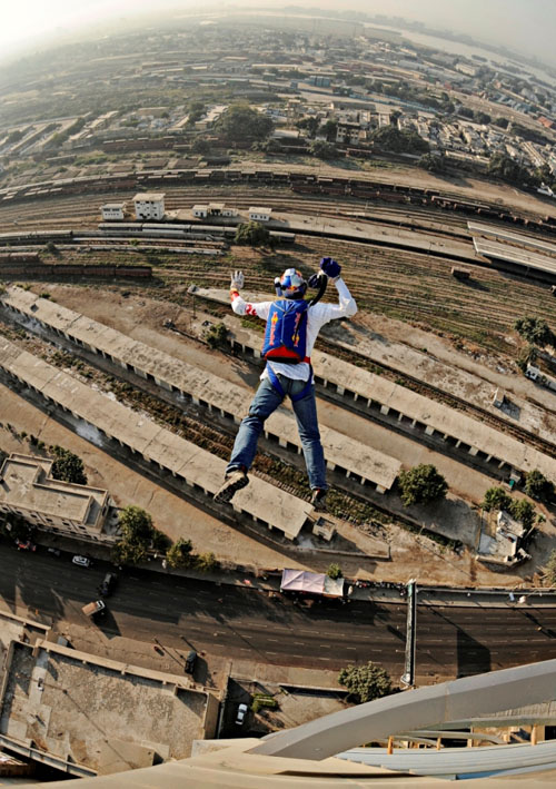 Известный российский бейс-джампер Валерий Розов совершил прыжок с крыши 29-этажного здания, самого высокого в Пакистане. Высота башни составляет 116 метров.