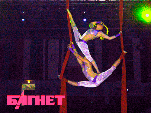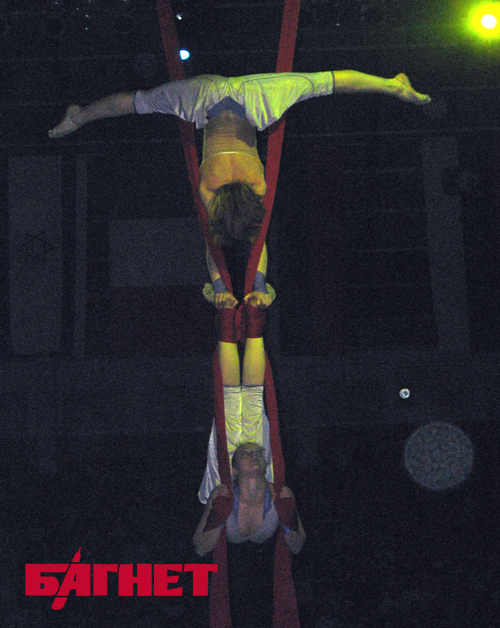 Выступление воздушных гимнасток Оксаны Давыденко и Ольги Бойко. Девочки исполняют свои трюки без страховки