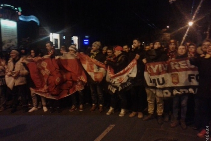 Драка произошла во время фанатского шествия, начавшегося за час до матча, который стартовал на стадионе "Черноморец".