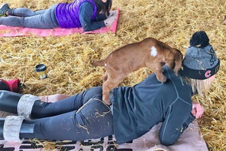 Йога с козами отличается от обычной только тем, что среди людей бродят дружелюбные животные. Иногда на упражняющихся запрыгивают козлята. В холодную погоду занятия ведутся в хлеву.