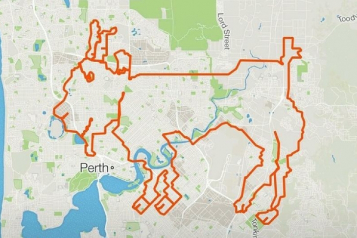 Группа велосипедистов-любителей в Австралии проехала в течение восьми часов 202 километра по местным дорогам, чтобы из их общего маршрута на компьютерной карте получилось изображение козла.