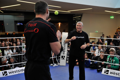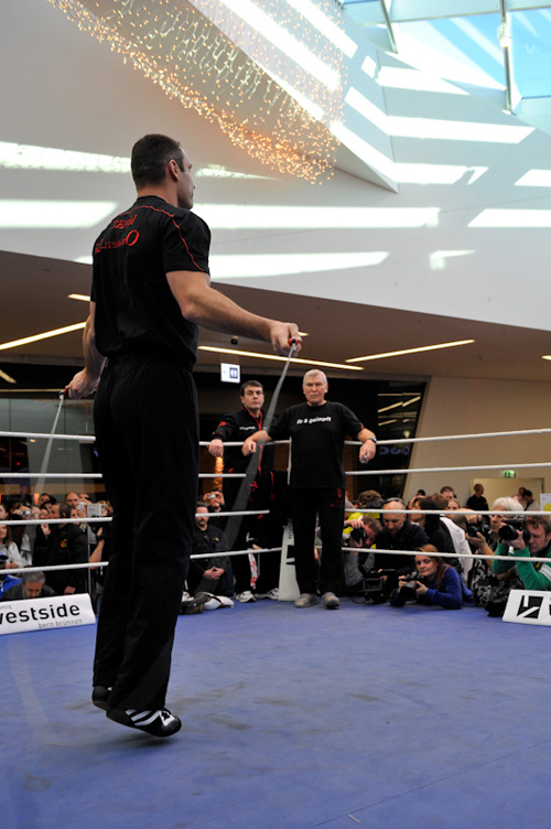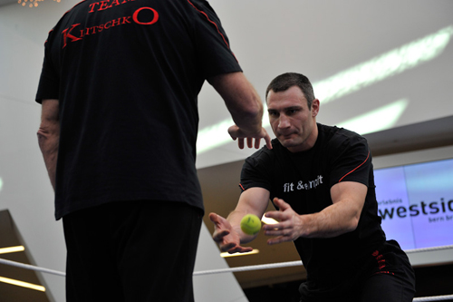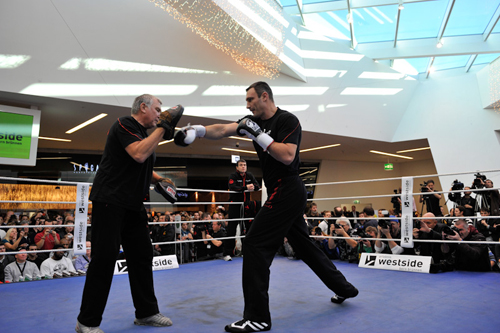 В швейцарском Берне (в гипермаркете WestSide) состоялась открытая тренировка участников субботнего поединка, в котором чемпион мира в супертяжелом весе по версии Всемирного боксерского совета (WBC) Виталий Кличко (38(37)-2(2)-0) встретится с не имеющим поражений 30-летним американцем Кевином Джонсоном (22(9)-0(0)-1).