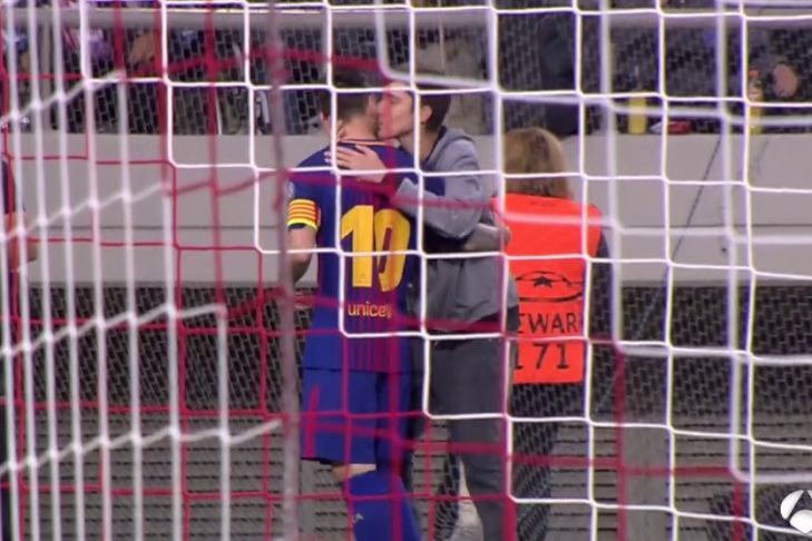 Форвард каталонцев Лионель Месси готовился к подаче углового, и в этот момент к нему подбежал один из фанатов. Он обнял и поцеловал футболиста, после чего вернулся на трибуну.