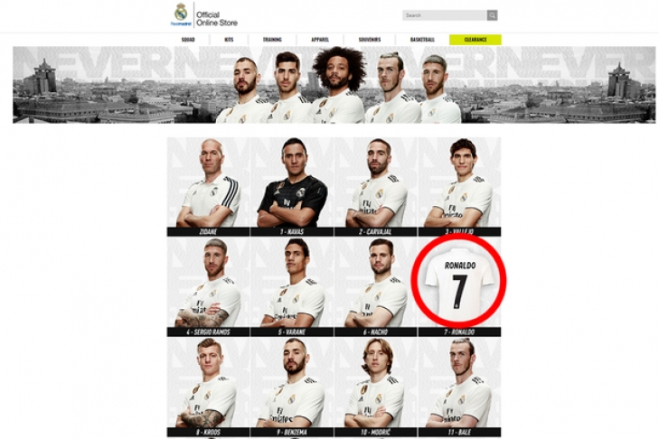 Фотографическое изображение ведущего форварда футбольной сборной Португалии Криштиану Роналду удалили из раздела "состав" официального сайта клубного магазина мадридского "Реала". Вместо фото футболиста изображена майка с игровым номером португальца.