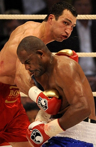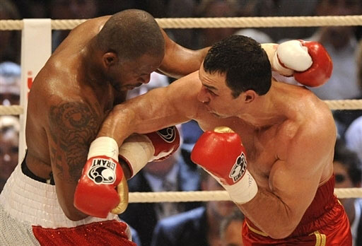 Владимир был нацелен на то, чтобы завершить бой в первой половине, но этого ему сделать не удавалось. Он явно выцеливал американца, а когда попадал, то создавалось впечатление, что он хочет зафиксировать удар. Кличко оставался на месте и смотрел, а не свалился ли Томпсон. Тони оказался парень не промах. Он настрелял нашему чемпиону так, что у Владимира после 3-го раунда под левым глазом засветилась гематома. Вообще Кличко выглядел в этом бою грузно и скованно, хотя был легче своего соперника на 3 кг.
