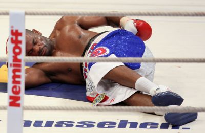 Но Томпсон в 11-м раунде был уже ни к чему не способен. «Тигр» выглядел как петух из Брементских музыкантов, «изрядно ощипанный», но пока не побежденный. Кстати, Владимира своим фейсом тоже наловил ударов будь здоров, так что его внешний облик назвать презентабельным было тяжело. Даже в момент победной атаки Владимир нарвался на удар от Тони, но правый кросс Кличко был сильным и обессиливший Томпсон рухнул.