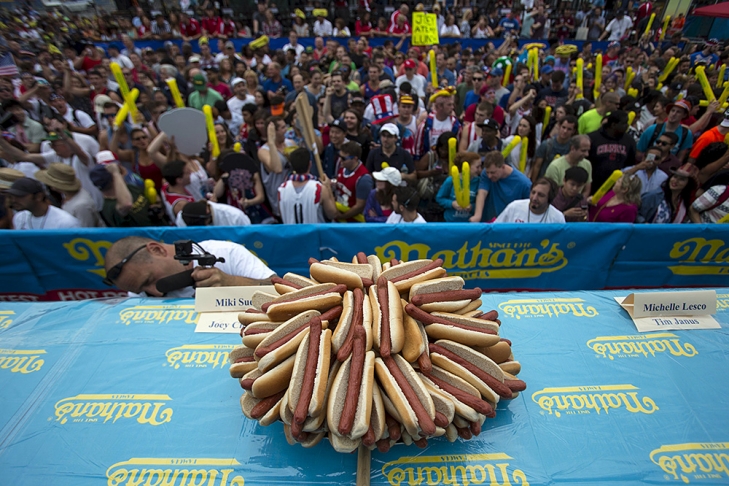 Данное мероприятие традиционно проводится в День независимости США. Участники соревнования должны съесть как можно больше хот-догов за 10 минут.