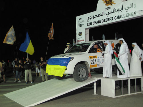 Автомобиль украинской команды на подиуме этапа Кубка мира по ралли-рейдам «Abu Dhabi Desert Challenge»