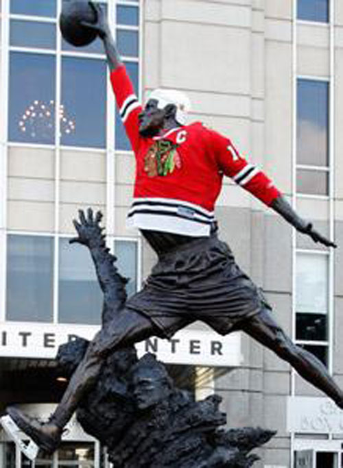 Памятник величайшему баскетболисту всех времен Майклу Джордану нарядили в хоккейную форму, сообщает lifesports. На него надели хоккейный шлем и коньки. В чикагском дворце спорта проходил матч финала Кубка Стэнли между «Чикаго Блэкхоукс» и «Филадельфией».