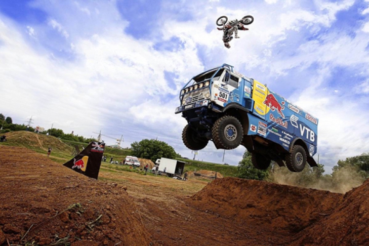 В Коломне состоялся совместный проект пилота команды «КАМАЗ-мастер», многократного победителя ралли-рейда «Дакар» Владимира Чагина и российского мотофристайлера, участника московской остановки мирового тура Red Bull X-Fighters 2010, Алексея Колесникова. На окраине города на специально подготовленной площадке были сооружены два перпендикулярных друг другу трамплина – для перекрестного прыжка КАМАЗа и мотоцикла – проекта, беспрецедентного как для мото-, так и автоспорта.