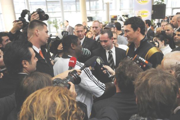 В одном из крупных автосалонов Берлина состоялась открытая тренировка участников назначенного на субботу боя за чемпионский титул Всемирного боксерского совета (WBC) между действующим чемпионом по этой версии нигерийцем Сэмуэлем Питером и почетным чемпионом Виталием Кличко.