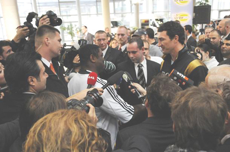 Открытая тренировка боксеров оказалась не просто тренировкой. Она вылилась в войну пиарассов. В ее круговерти нигериец и его команда стремились завоевать симпатии хотя бы части зрителей, столь необходимые «Нигерийскому кошмару» – ему ведь предстоит выступать на чужом поле. Иначе невозможно объяснить то, что Питер появился на ринге в трико немецкой футбольной сборной, а не в майке национальной команды Нигерии.