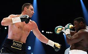 Вчера в Берлине состоялся вечер профессионального бокса, главным событием которого был поединок между чемпионом Всемирного боксерского совета (WBC) в супертяжелом весе 28-летним нигерийцем Сэмюэлом Питером и обладателем титула почетного чемпиона планеты этой организации 37-летним украинцем Виталием Кличко.