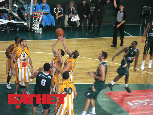 Первую половину матча «волки» закончили с «+15» – 47:32. Когда разница в счете достигла более двадцати очков, Саша Обрадович выпустил на площадку украинскую молодежь – Дениса Лукашева и Александра Липового. Их удачные действия в игре и заброшенные мячи болельщики приветствовали громкими овациями.