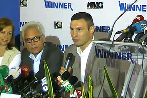 Чемпион в ответном слове по достоинству оценил заслуги и опыт американца. Виталий Кличко сказал, что Шеннон – рекордсмен по количеству нокаутов проведенных в первом раунде и обещает разобраться со мной как можно быстрее, «но я знаю, что Виталия Кличко в этом поединке сможет победить, только Виталий Кличко», - подчеркнул чемпион мира и пообещал захватывающий и зрелищный поединок.