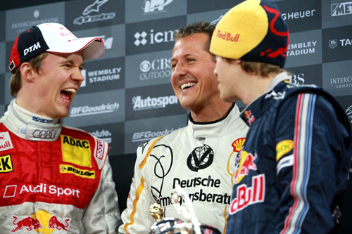 Надо сказать, что на «Уэмбли», где прошла супергонка, Дэвид Култхард проиграл еще и семикратному чемпиону Формулы-1 Михаэлю Шумахеру во время полуфинала розыгрыша Кубка Наций. Михаэль даже притормозил перед финишем заезда, чтобы дождаться шотландца, в нескольких местах проверившего на прочность оградительные бордюры, сообщает ProFormula.
