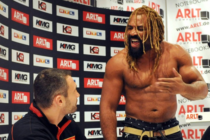 До боя чуть меньше неделя, нервы уже на пределе. По крайней мере, у американского претендента на титул Шеннона Бриггса. Соперник Виталия Кличко - настоящая находка для журналистов. Вся пресс-конференция - шоу одного актера. С раздеванием, надуванием воздушных шаров, игрой мускулами, демонстративным уходом из зала и неожиданным возвращением.