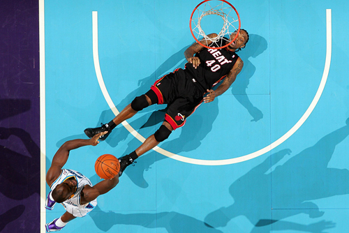 Эмека Окафор из команды «New Orleans Hornets» перепрыгивает через упавшего Удониса Хаслема из «New Orleans Arena» в Новом Орлеане (Chris Graythen/Getty Images)