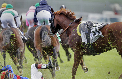 Анна Направник упала с лошади во время Кубка породистых лошадей в Лузвилле, штат Кентукки(AP Photo/Ed Reinke)