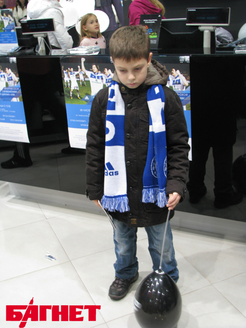 К часу дня в небольшое помещение магазина набилось такое количество людей, что казалось, будто тут собралось полстадиона им. Валерия Лобановского. В основном пришли молодые парни, одетые в символику команды, среди них затесалось пару девушек. Но были также папы с сыновьями, гордо держащие своих отпрысков за руки, пока те в это время катили перед собой мячик.