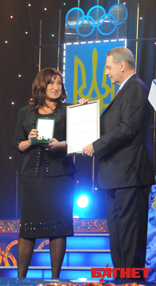 Президент Международного олимпийского комитета Жак Рогге вручил медаль Пьера де Кубертена президенту Олимпийской академии Украины Марии Булатовой