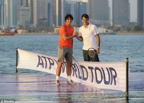 Когда легенды современного тенниса Рафаэль Надаль и Роджер Федерер встречаются в поединке лицом к лицу, меньше всего хочется, чтобы пошел дождь и матч был отменен. Но во время их последней битвы избежать мокрого покрытия не удалось – матч прошел на плавающей площадке в заливе Доха, Катар, пишет DailyMail.co.uk.