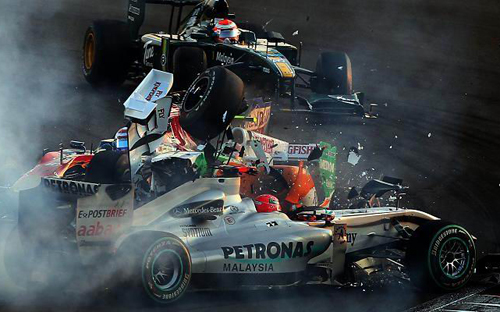 Кто-то скажет, что Михаэль Шумахер (Michael Schumacher) потерял голову, когда после трехлетнего перерыва решил вернуться в «Формулу-1». Так это или нет судить не нам. Определенно, семикратный чемпион гонок чуть не лишился рассудка, когда в Абу-Даби команда Тонио Льюцци (Tonio Liuzzi) Force India раздавила его любимый Mercedes Petronas. Нужно сказать, Шумахеру, находившемуся в кабине раскуроченного авто, тогда крупно повезло.
