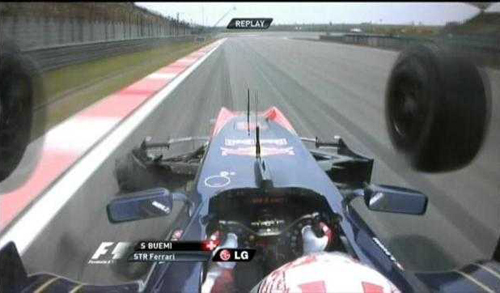 Себастьян Буеми (Sebastien Buemi) попал в серьезную аварию во время свободной практики на Гран-при Китая (4 этап). Спокойно! Шведский спортсмен из команды Toro Rosso всего лишь потерял колеса. В конце длинной прямой на торможении у болида сломалась подвеска и одновременно оторвались оба передних колеса.