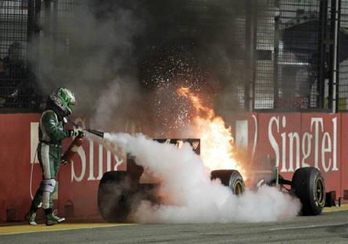 Хейкки Ковалайнен (Heikki Kovalainen) доказал, что может не только удержать штурвал в руках, но и вмиг затушить пожар, поглотивший его драгоценный Lotus. Подвиг пожарного финн совершил в Сингапуре на 15 этапе гонок.