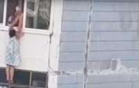 "На волоске от смерти": В Запорожье женщина повисла на балконе 9-го этажа (видео)