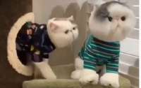 "Ревнивый" кот подрался со своей игрушечной копией (видео)