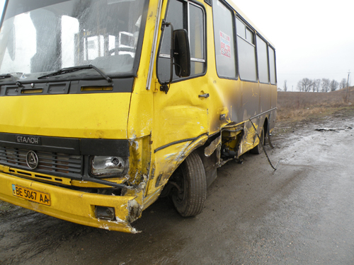 В результате чего произошло столкновение с автомобилем БАЗ А07914 (маршрутный автобус), который двигался во встречном направлении. Об этом «Багнету» сообщили в пресс-службе ГАИ Николаева.