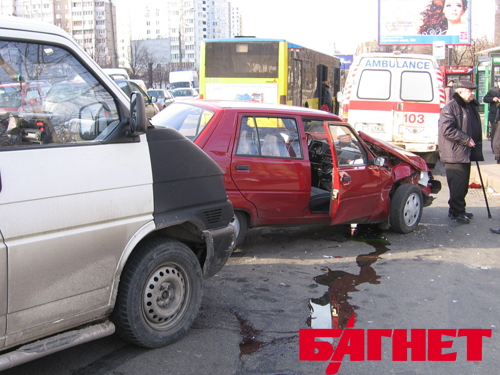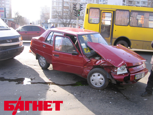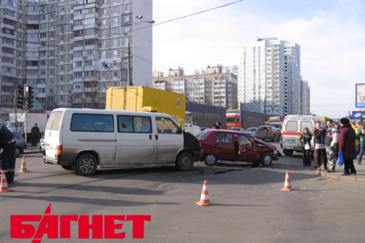В Киеве на Харьковском шоссе около 14:00 столкнулись автомобили «Таврия» и микроавтобус «Фольксваген». ДТП произошло как раз на перекрёстке с ул. Брацлавская. Со слов участников ДТП, водитель «Фольксвагена» двигался по Харьковскому шоссе в направлении Ленинградской пл. Навстречу ему ехала «Таврия». На перекрёстке «Таврия» совершила поворот налево, на ул Брацлавскую, водитель «Фольксвагена» такого манёвра не ожидал, в результате чего и произошло столкновение. К счастью, обошлось без человеческих жертв.