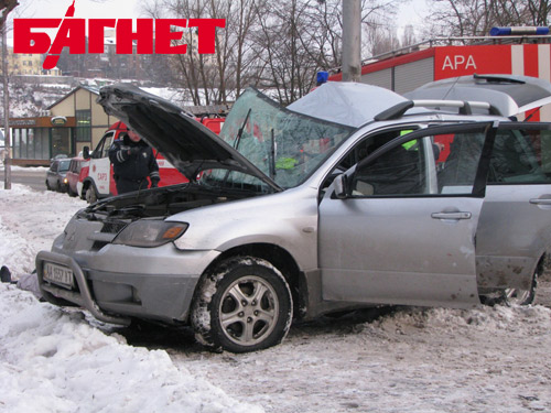 Как удалось выяснить, «Митсубиси» двигался со стороны ул. Н.Гринченка. Женщина-водитель утверждает, что скорость была небольшая, однако, по непонятным причинам, автомобиль понесло юзом, он вылетел на тротуар и боком влетел в осветительную опору.