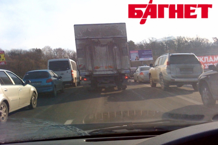 Кроме этого, вся траса забита многотонными фурами и техникой, которые беспрепятственно въезжают в Киев. При этом в Европе въезд грузовиков в крупные города днем давно запрещен.