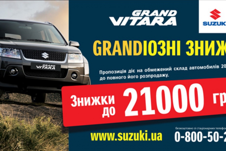 ГРАНДиозное предложение – скидка до 21000 грн. на Suzuki Grand Vitara!