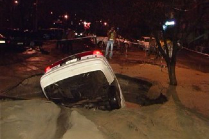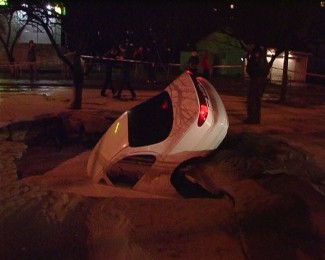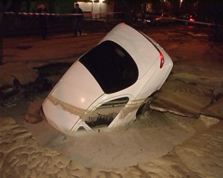 Ночью, 25 марта, в Киеве, на проспекте Героев Сталинграда, под землю провалился автомобиль «Форд», сообщает «Магнолия-tv». Хозяин припарковал его на ночь в собственном дворе. В определенный момент где-то под машиной лопнула водоносная магистраль, и почву начало вымывать. Через минуту «Форд» провалился в яму, на поверхности остался разве что багажник. Автомобиль до половины зажало в толще плывуна, то есть слоя песка с водой. К счастью, никто из людей не пострадал.