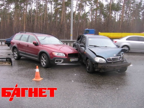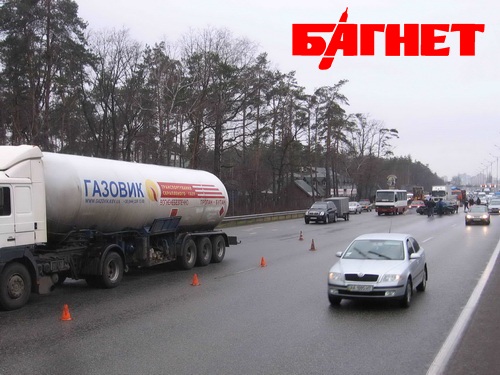 Как стало известно от участников ДТП, авария произошла следующим образом. Автомобиль «МАН», перевозящий сжиженный газ, двигался в третьем ряду. В определенный момент водитель начал перестраиваться во второй ряд и не заметил попутно идущий в этом ряду «ДЕУ Ланос». В результате произошло столкновение от которого «Деу» потерял управление. А дальше – как в кино. «Деу» занесло, отбросило к центральному отбойнику а затем, ударившись об него, «Ланос» отлетел обратно в третий ряд. И уже там него врезалась идущая позади «Вольво».