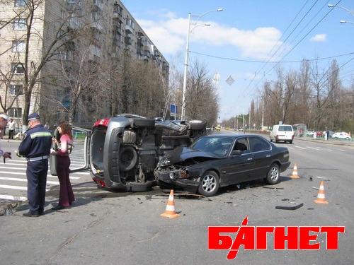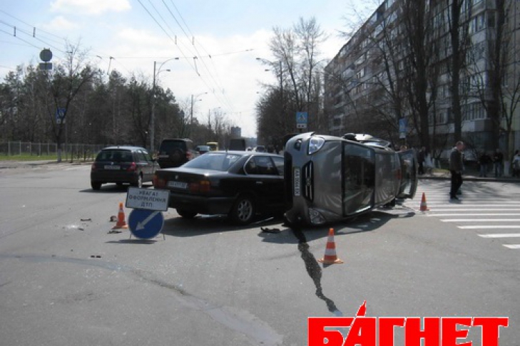 В Киеве «BMW» помог «KiA» сделать сальто на асфальте (ФОТО)
