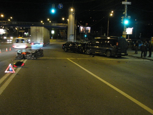 Во вторник вечером на перекрестке Краснозвездного проспекта и ул.Кировоградской водитель Skoda Superb, пытаясь проскочить на красный свет, на огромной скорости снес мотоцикл, после чего врезался лоб-в-лоб в Chevrolet Explorer, который в свою очередь рикошетом ударил кроссовер Mazda. Прибывшие врачи скорой помощи госпитализировали пилота мотоцикла с разрывами внутренних органов, обильным внутренним кровотечением, переломами костей таза, но спасти его, к сожалению, не удалось. Мотоциклист скончался через несколько часов на операционном столе. По рассказам многочисленных свидетелей ДТП сложилась следующая картина. По Краснозвездному проспекту на большой скорости со стороны Московской площади неслась Skoda. На перекрестке с ул. Кировоградской для нее уже загорелся красный свет, машины в левом и среднем ряду остановились, но водитель Superb обходит стоящие автомобили по правому ряду и вылетает на перекресток. В это время на перекресток на свой зеленый уже выезжал транспорт с улицы Кировоградской. В левом ряду двигался автомобиль, водитель которого, по его словам, в последний момент увидел слева несущуюся на большой скорости Skoda и успел затормозить, правее него на перекресток выезжали два мотоцикла - Suzuki V-Strom, а за ним Yamaha YBR. Skoda, не снижая скорости, сносит Suzuki, после чего водитель «чеха» теряет управление и врезается в стоящий на светофоре в сторону Московской площади Chevrolet Explorer. Тот от удара сдвигается на несколько метров назад и бьет правым задним крылом стоявшую в правом ряду Mazda CX-7.