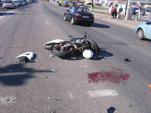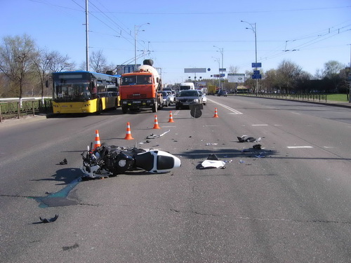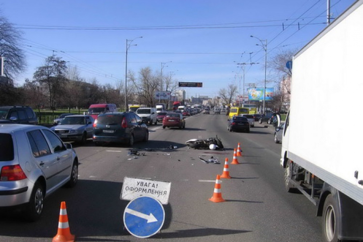 Со слов очевидцев ДТП произошло следующим образом. Автомобиль и мотоцикл двигались от Троещины в направлении Лесного пр-кта, оба двигались в крайней левой полосе параллельно друг другу. На пешеходном переходе водитель Лексуса решил развернуться в обратном направлении, и, как только он совершил маневр, в него на полном ходу врезался мотоцикл.