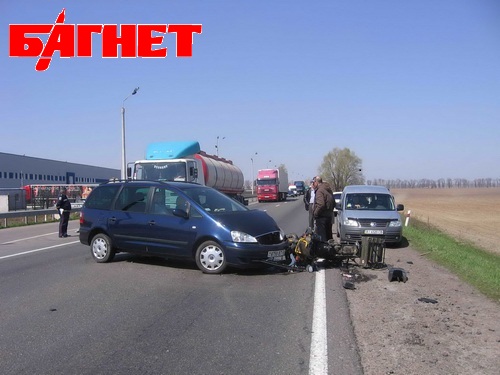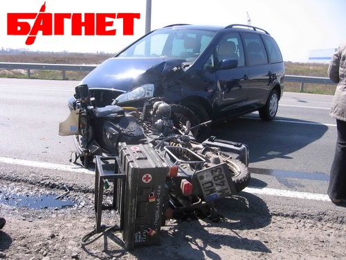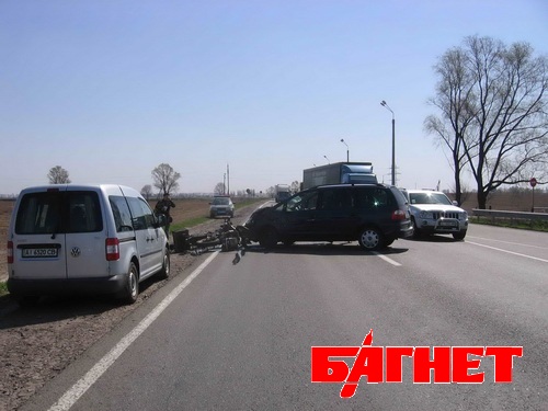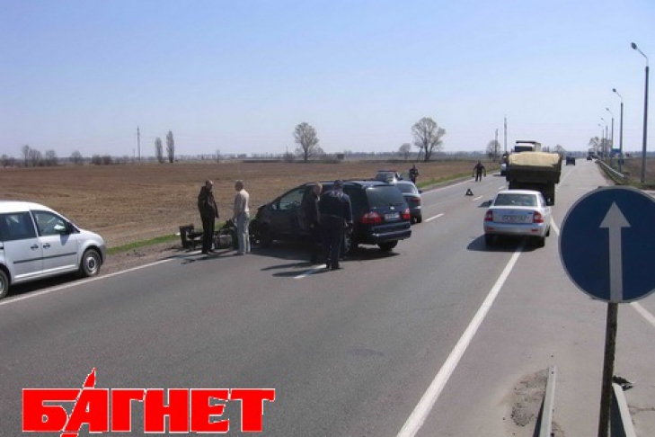 В результате мотоциклиста, к стати родом из Германии, госпитализировали с переломом бедра в Борисполькую больницу. По-русски немец не говорит.