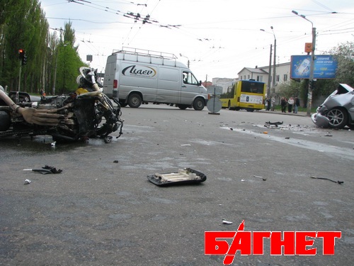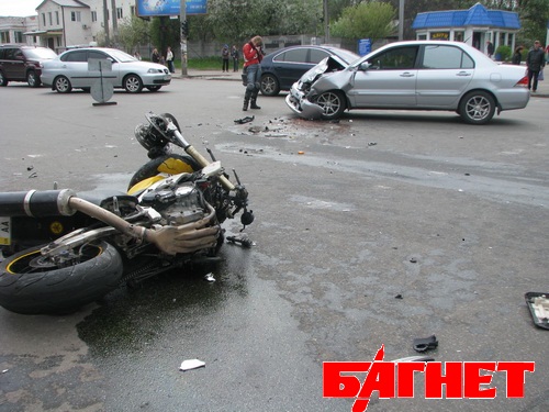 В воскресенье днем на перекрестке улиц Маршала Гречко и Северно-Сырецкой автомобиль Митсубиси Лансер, поворачивая налево, не пропустил движущийся навстречу мотоцикл Yamaha YZF-R1. Удар мотоцикла пришелся в левое переднее крыло автомобиля, после чего пилота отбросило в припаркованный на остановке Мерседес. Прибывшие врачи скорой помощи госпитализировали пострадавшего мотоциклиста с тяжелыми травмами. Как выяснилось, Митсубиси двигался со стороны проспекта Правды и на перекрестке с ул.Северно-Сырецкой поворачивал налево. Навстречу ему со стороны площади Интернациональной двигался пилот Yamaha. Водитель Митсубиси утверждает, что стоял в крайней левой полосе, ожидая поворота на Северо-Сырецкую, однако судя по положению автомобиля, Митсубиси во время удара уже находился на полосе встречного движения, начав поворот.