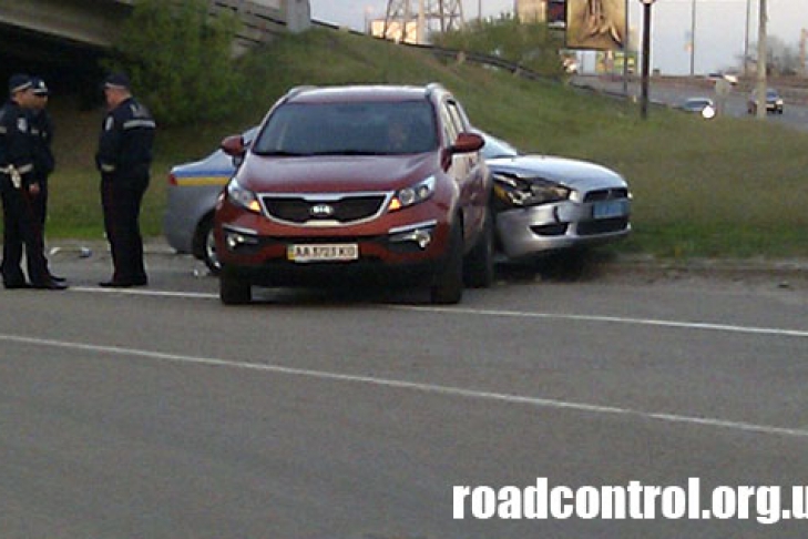 В Киеве, накануне вечером 8 мая на развязке Киквидзе - Саперно-Слободская произошло занимательное ДТП.