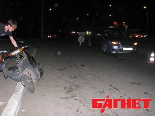 В выходные на Голосеевском проспекте (40-летия Октября) таксист на "Хонда Аккорд", выехал на полосу встречного движения и лоб в лоб столкнулся с мотороллером "Сузуки". К счастью, несмотря на отсутствие защитной экипировки, пилот скутера практически не пострадал. Прибывшие на место происшествия врачи скорой помощи оказали первую помощь пострадавшему, но от госпитализации тот отказался. Мотороллер же восстановлению, скорее всего, не подлежит. Почему водитель такси, который вез пассажира, ехал по встречке - остается загадкой. На месте работают сотрудники ГАИ.