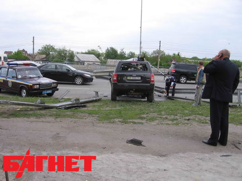 17 мая около 17:00 на Столичном шоссе напротив авторынка в направлении Кончи-Заспы автомобиль Jeep Patriot «напоролся» на отбойник. К счастью, никто не пострадал. Водитель в последний момент успел пригнуться, и металлическая конструкция прошла над его головой. Как удалось позже выяснить, причиной аварии стала его же невнимательность. По его словам, он должен был встретиться со знакомым, поэтому вертел головой по сторонам и не обратил внимания на то, что машина «ушла» с полосы и наехала на отбойник.