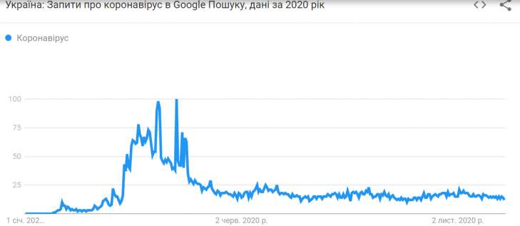 Ожидаемо, наиболее актуальной темой поиска для украинцев стал коронавирус. Пользователи интересовались симптомами этой болезни, а также гриппа, антисептиками для рук, защитными масками, антителами и т.п. Наибольший интерес к ковидной тематике соотечественники проявили в апреле.